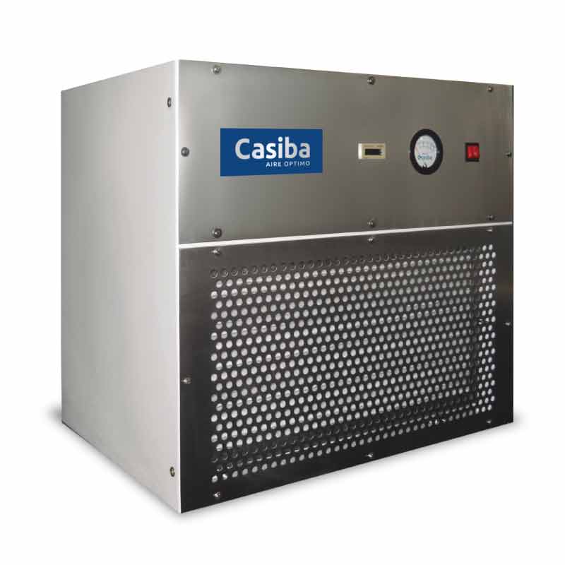 Equipado con ventilador centrífugo monofásico, con dos etapas de filtrado: un prefiltros de mediana eficiencia CASIBA 301 PR en la cara de entrada, y un Filtro ABSOLUTO® HEPA H-13 del lado de la salida del aire. Cuenta además con un manómetro diferencial analógico CASIBA incorporado, para el control de la saturación del Filtro ABSOLUTO®, y con un contador horario para el control de las horas de funcionamiento efectivo. Son equipos totalmente independientes que se amuran a una pared o se fijan a una estructura metálica o tabique, mediante brida y contrabrida.